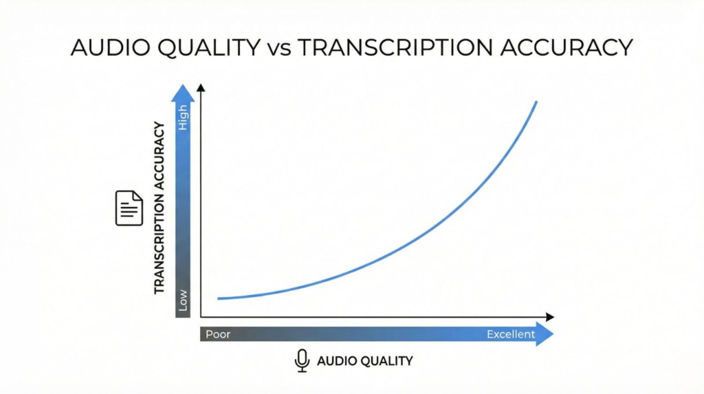 The important thing to understand is this: most AI transcription tools are already very accurate in good conditions. In fact, modern speech-to-text systems often reach accuracy rates between 85% and 95% when audio quality is clean. Problems usually appear when real-world meetings get messy — multiple speakers talking, accents, fast conversations, or low-quality microphones.
