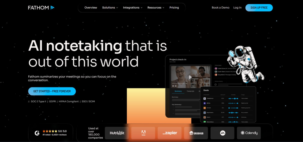 If your priority is reliability, Fathom consistently delivers some of the most accurate transcripts available. It handles multi-speaker conversations well and structures notes automatically into decisions, tasks, and highlights.